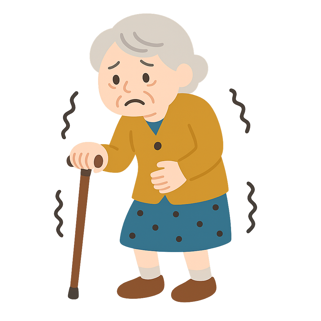 代表的な症状は手足の震え(振戦)、動作が遅くなる(無動)、筋肉のこわばり(固縮)、姿勢反射障害の4つです。