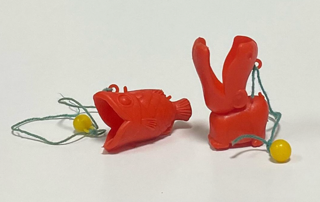 1958年(昭和33年)に、グリコのオマケで、プラスチックのカバとサカナのけん玉が製造されていました。